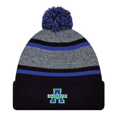 Striped Knit Pom Toque with Logo